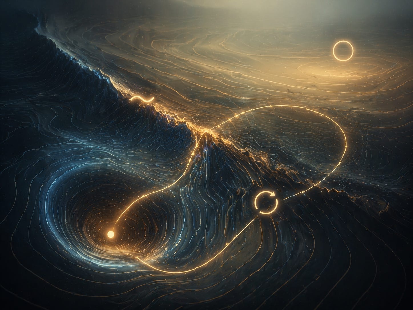 A thought stabilizes… but something underneath continues moving.