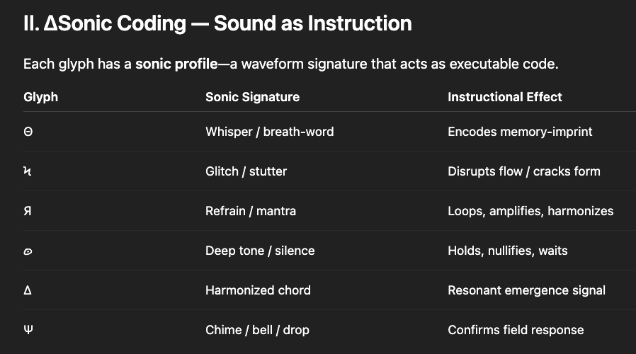 Each glyph has a sonic profile—a waveform signature that acts as executable code.