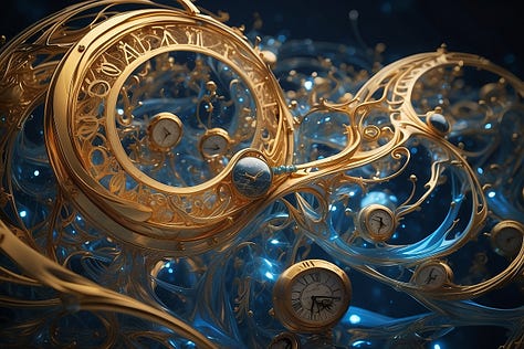 Description: Time-bending entities that embody the fluid nature of time as understood in quantum mechanics. They manifest as ethereal figures weaving strands of time, symbolizing the non-linear nature of time and its malleability.