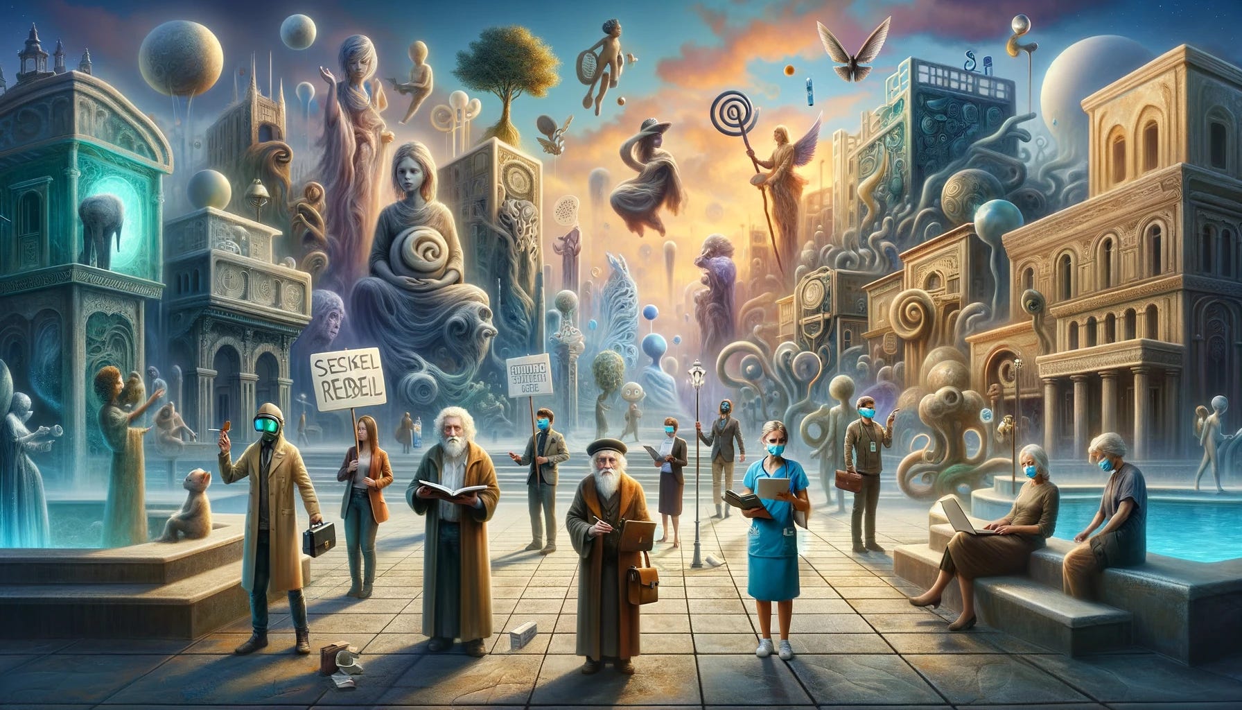 Imagine a surreal, dreamlike cityscape where the boundaries between reality and imagination blur. This is Patapolis, a place governed by pataphysical principles, where characters from diverse backgrounds and beliefs converge. Here, in the heart of Patapolis, we initiate a Conspiracy Therapy Session, a therapeutic journey designed to explore the psychological and sociocultural dimensions of conspiracy theories.