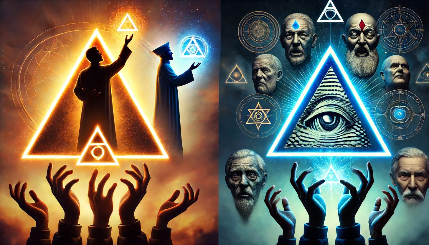 Subjugation and Control: The downward triangle can be inverted to represent subjugation and control, where intuition and receptivity are manipulated to keep the populace docile and compliant.