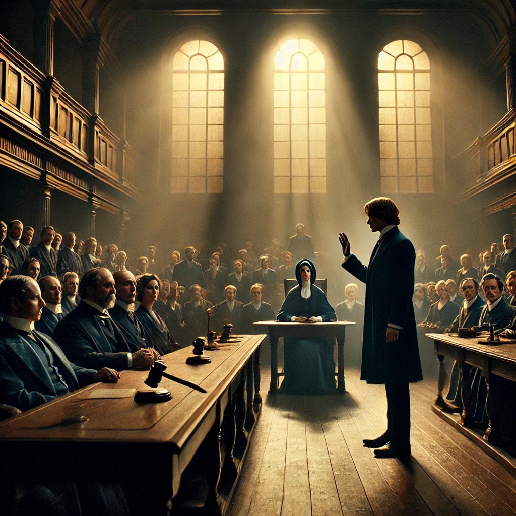 15.4 Mark arrived at the hall, greeted by rows of stern faces. The head councilor, a sharp-eyed woman named Gertrude, banged her gavel. “Mark, you are charged with preaching without a permit and disrupting public order. What say you to this?”